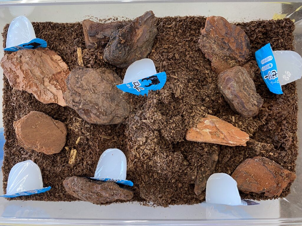 ゼリー:ゼリーは3〜6個分を半分にカット、1週間に一度交換、個数はゼリーの減り具合で判断