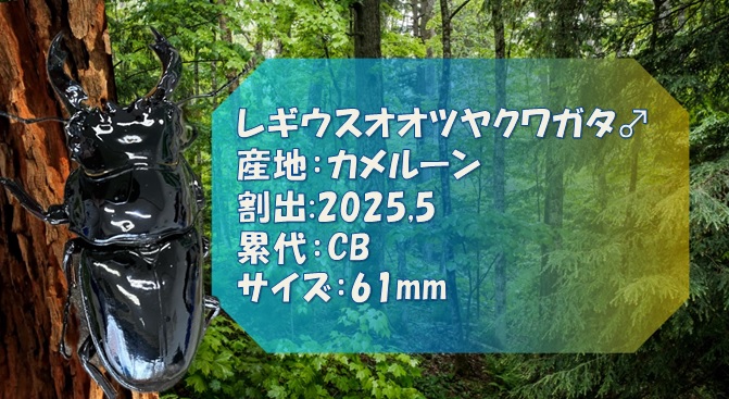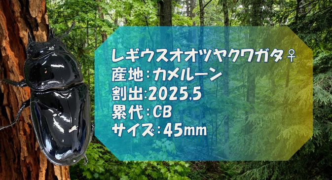 カメルーン産レギウスオオツヤクワガタのペアを購入。エナメルを感じさせるツヤ感が特徴でとにかくかっこいい。怒るブルブル震えたり、体の割に食欲旺盛な魅力的なクワガタだ。
